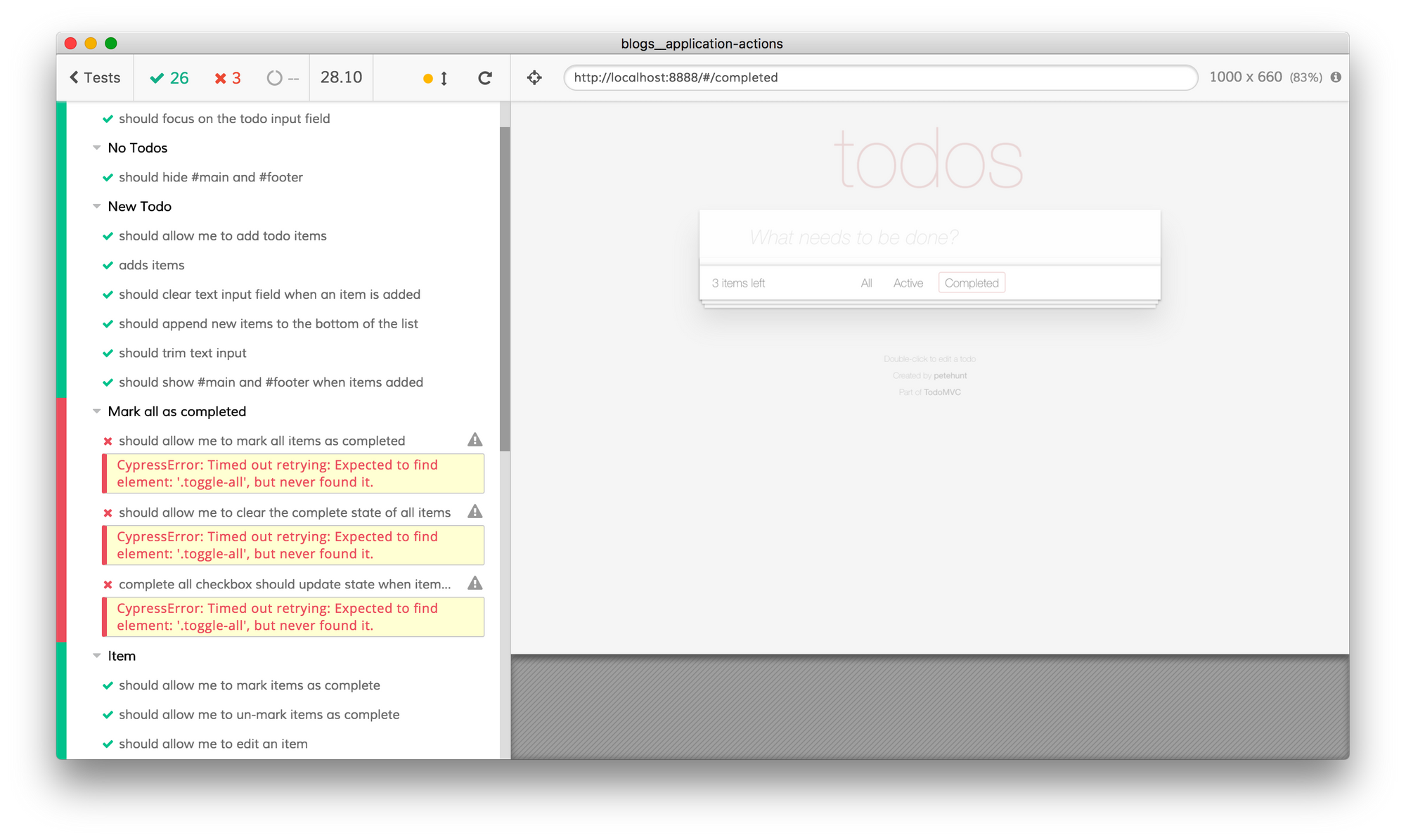 One beautiful benefit of using application actions to drive tests are very focused errors. For example, the application UI has a checkbox to toggle all items as completed. The code looks like this.