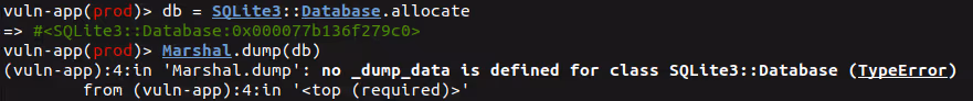 It did pique our interest if the above dangerous construct could still result in arbitrary code execution on a minimal installation of Ruby on Rails, which resulted in the discovery of a new method by loading SQLite extension libraries via the SQLite3::Database class in the sqlite3 gem. Upon further investigation, this new SQLite3::Database reflection gadget could also be exploited in a new deserialisation gadget chain if user inputs were deserialised using Marshal.load on a Rails application with the sqlite3, activerecord and activesupport gems installed.