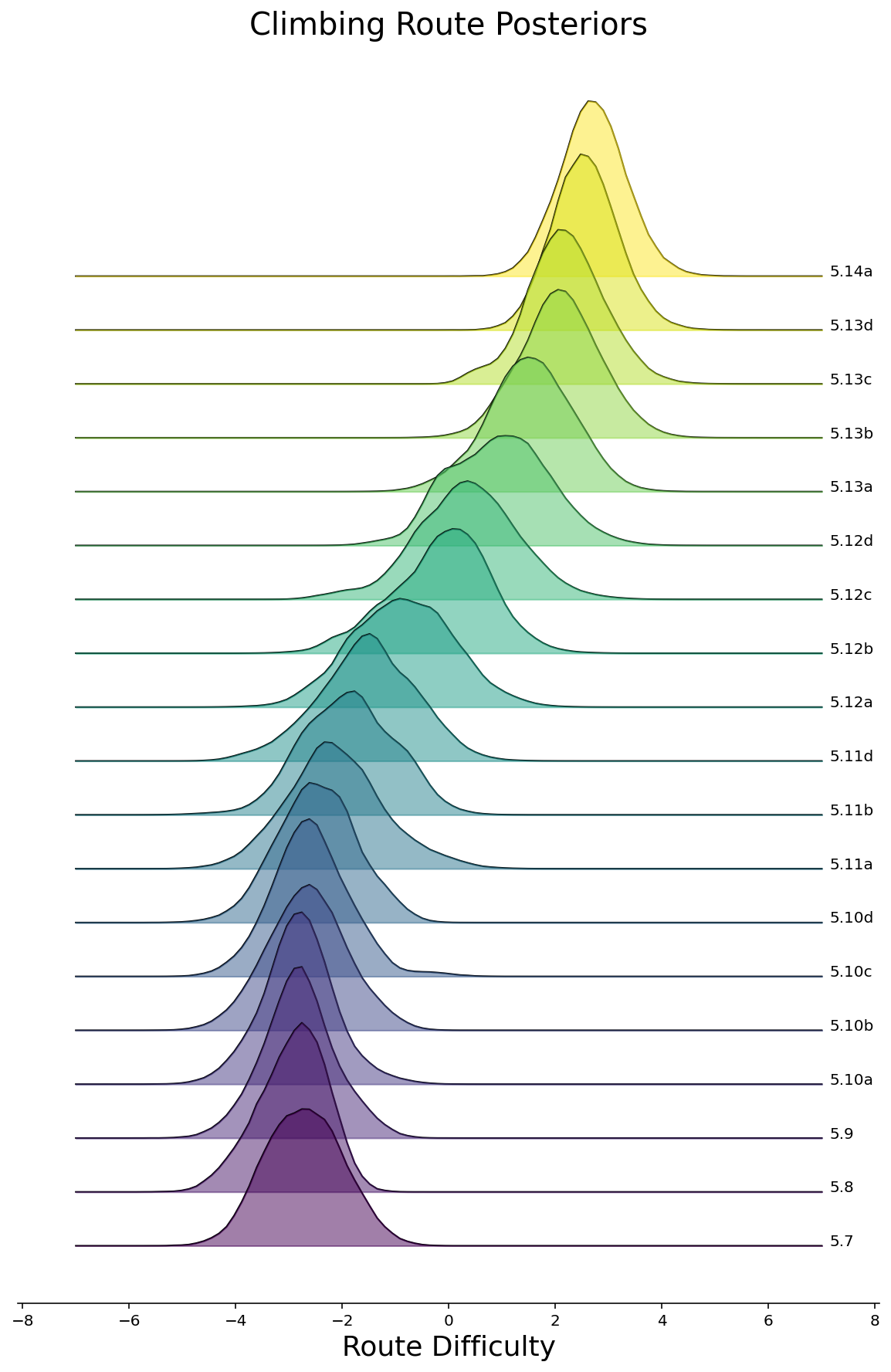 ax.set_title("Climbing Route Posteriors", fontsize=20)