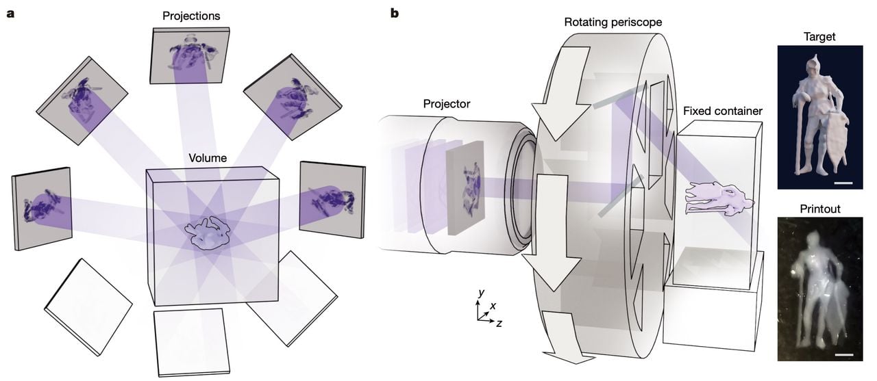 A Tsinghua University team claims sub second volumetric 3D printing with fine features, and the trick is moving the optics instead of the resin.