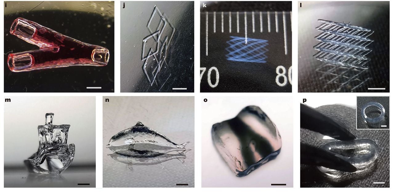 If the DISH process really scales cleanly, it starts to look less like a proof of concept and more like a programmable micro moulding line. They print varied geometries back to back, including a #3DBenchy sized demonstration and more intricate shapes, without changing tooling. They also show compatibility across several acrylate chemistries and hydrogels.