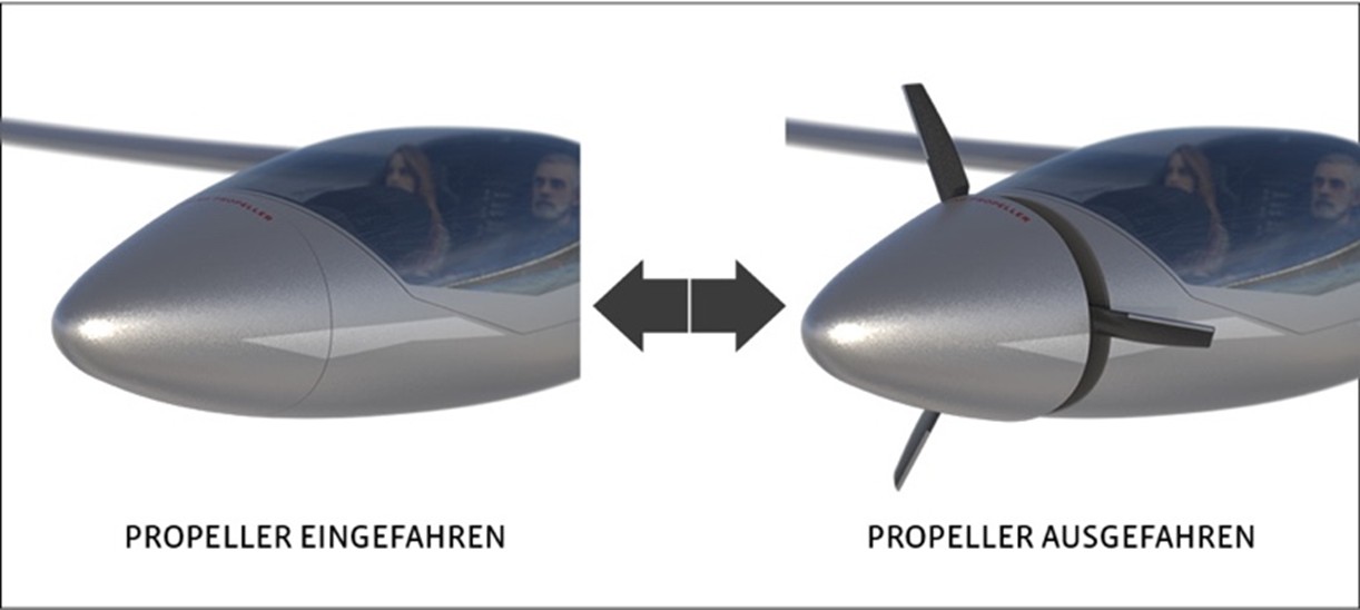 - Reiner Stemme Faltbarer Propeller: Einzigartiges Konzept, das den nahtlosen Übergang zwischen Motor- und Segelflug ermöglicht.