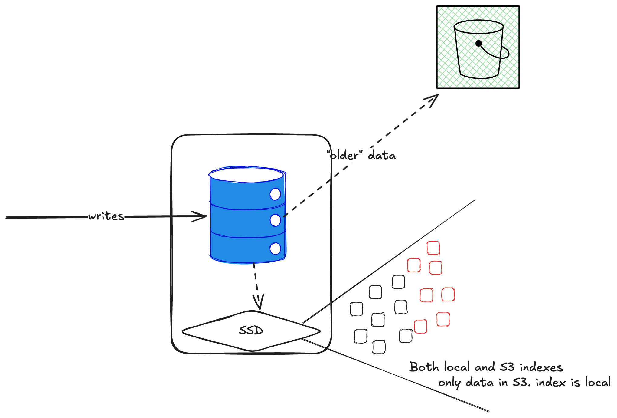 ClickHouse treats S3 as just another disk. It writes to it like a file system, which means many small files and operations—this drives up S3 costs. Worse, it's not actually stateless. You can't just point a new ClickHouse node at an S3 bucket and query the data because the indexes are stored locally on the original shard.