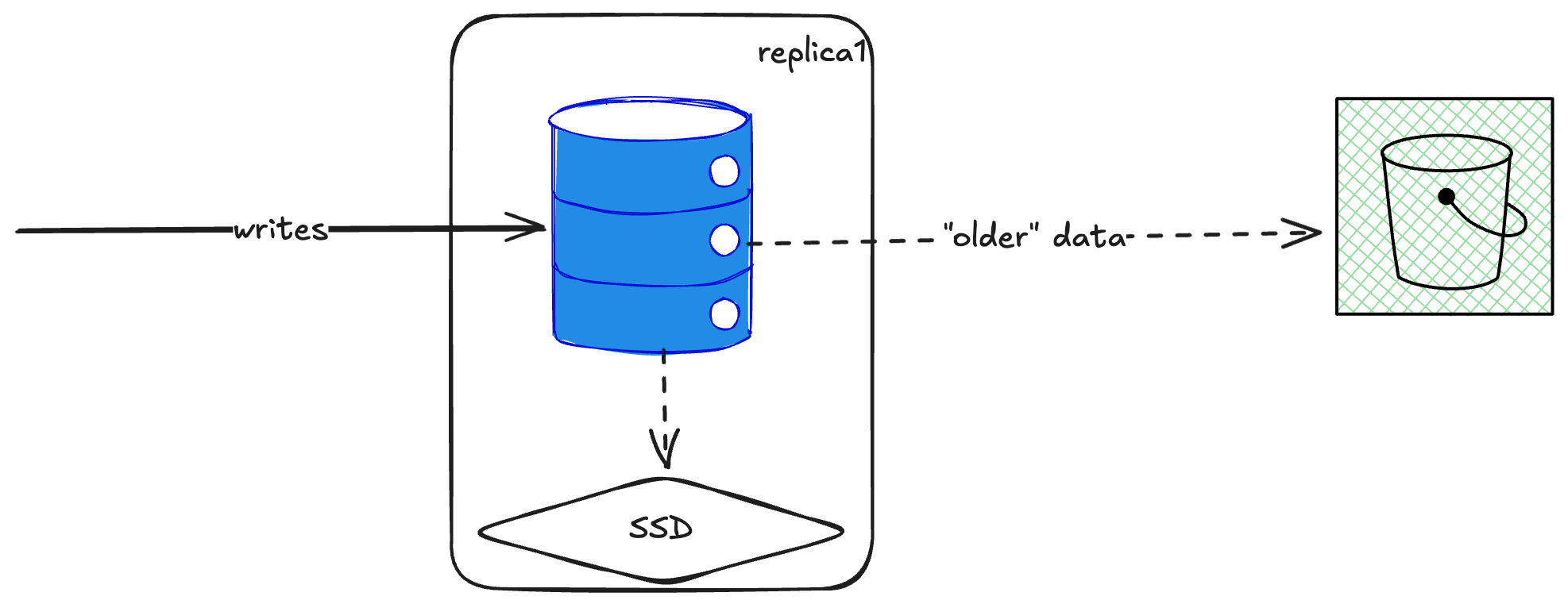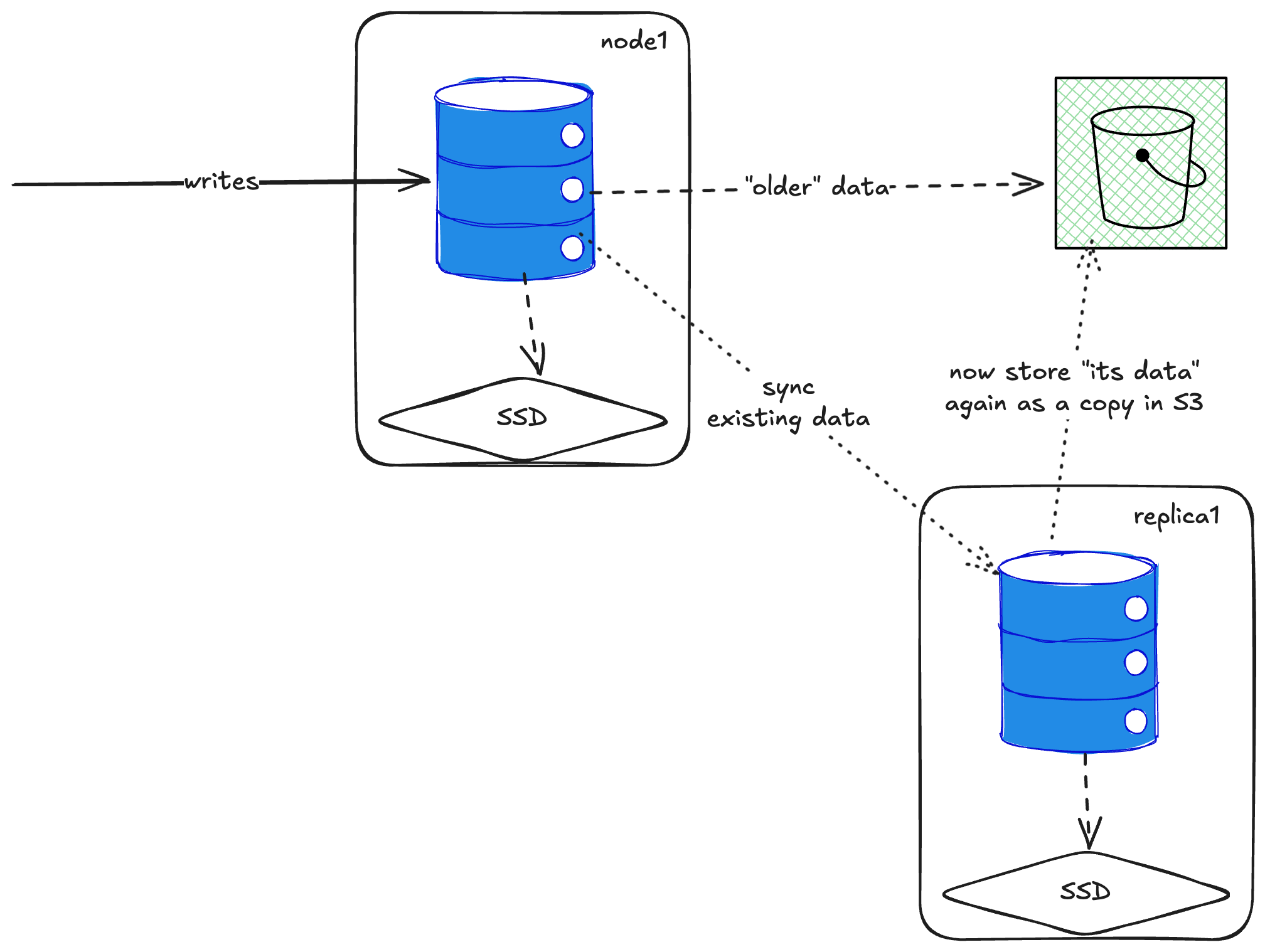 Fine, I thought, just add a replica. But that doesn't work either—when you add a replica, it downloads all the data and writes its copy to S3. With five replicas, you'd have five copies in S3. Not great.