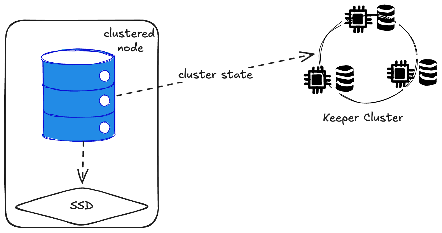 Once you want more than one node, you need a coordination layer. ClickHouse uses either Zookeeper or ClickHouse Keeper (their implementation, since Zookeeper is in Java and challenging to operate).