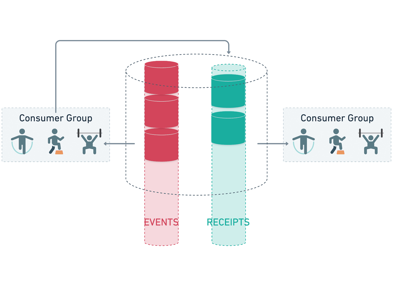 We maintain separate consumer groups for receipt messages and event messages, which allows us to factor in any performance differences in both the application logic being used as well as any network delays. In order to reduce the amount of wasted work, when receipt messages are added they are set with a 10 second delay so that consensus should already have been reached when we first check the status. This is an improvement over our previous incarnation on another ledger platform, where the network maintained an open connection whilst submitting a transaction until consensus had been reached or enough rounds had passed for the transaction to fail.