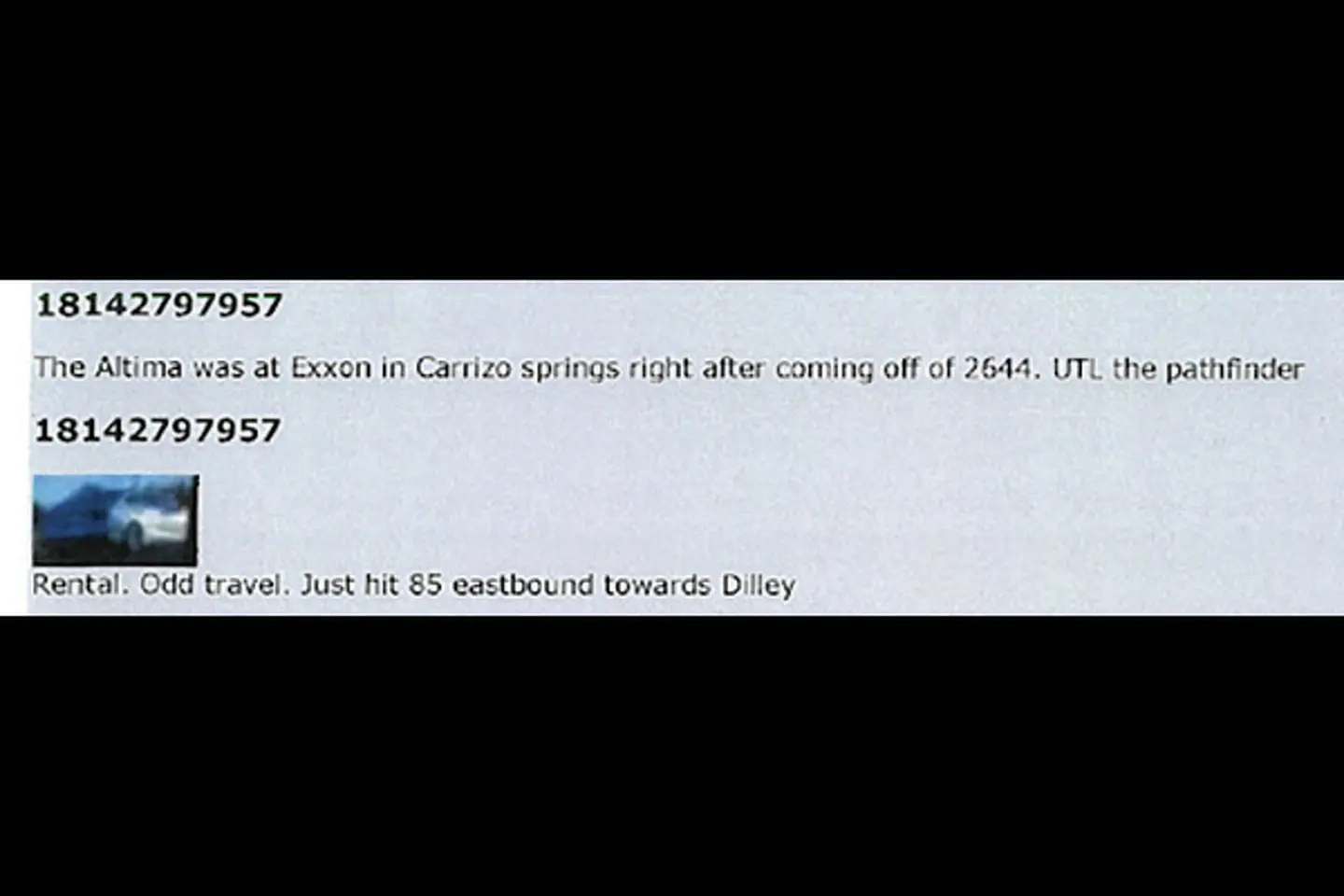 The WhatsApp report on Schott included more than just his route. “What it came down to was he left Houston with a female passenger,” Babb said. “He ended up going all the way to Carrizo Springs. What I was told was that he dropped a female off at a hotel.”