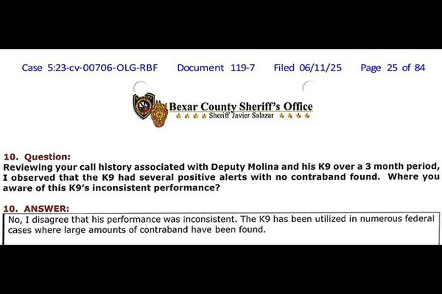 According to Bexar County’s testimony, Max was extremely reliable, with police finding contraband 90% of the time he alerted on a vehicle. A subsequent internal investigation into Schott’s stop, however, was less complimentary.