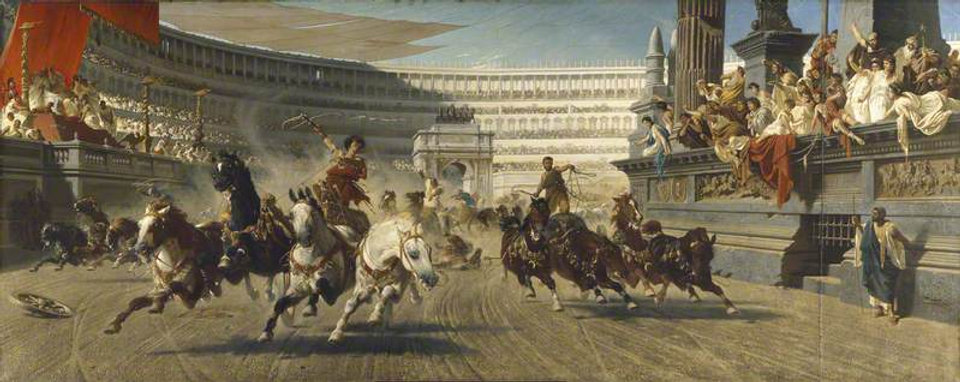 Imagine if the New York Yankees and the Boston Red Sox fans fight with each other over turf control, set up gambling operations, extort money, and intimidate political opponents. Imagine also that the only time you would be able to see the President of the United States was at a baseball game, and this was the only time you could let them know your displeasure. Welcome to the world of Roman chariot racing.