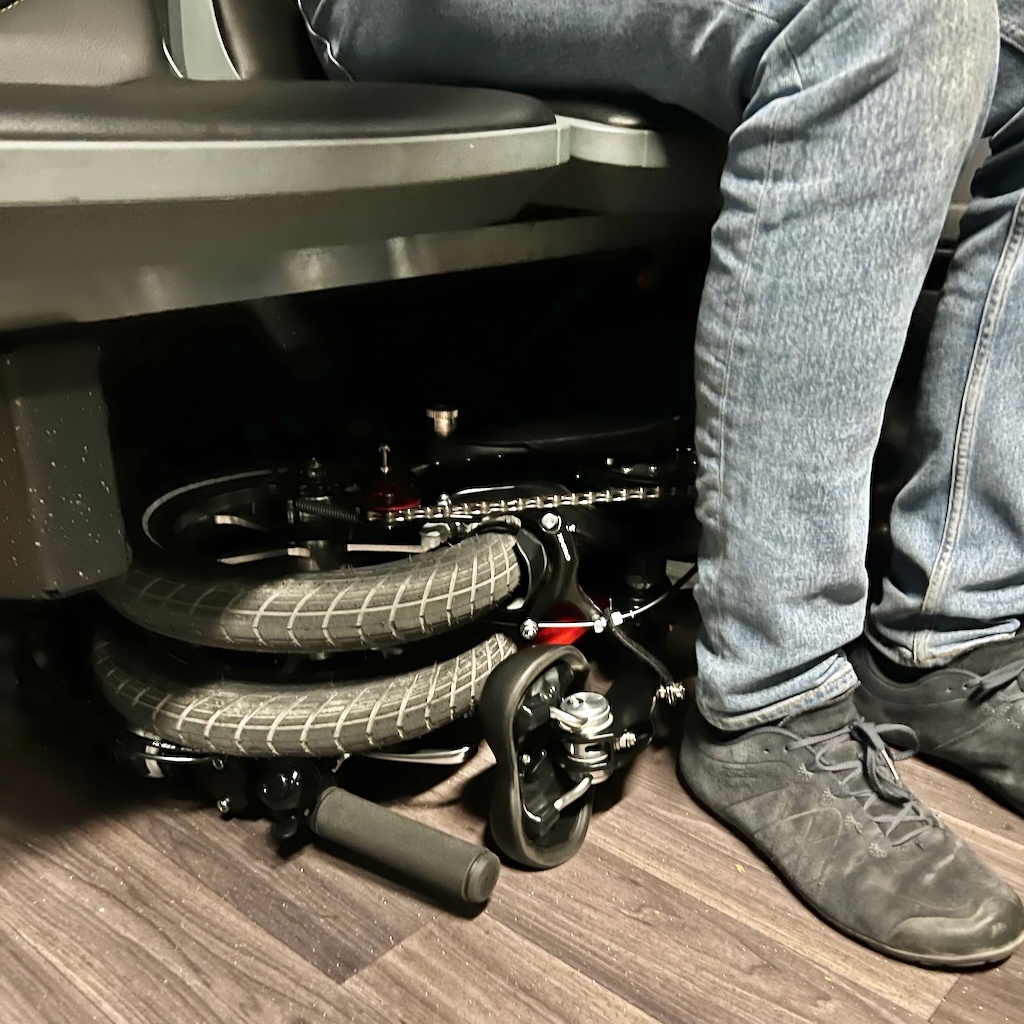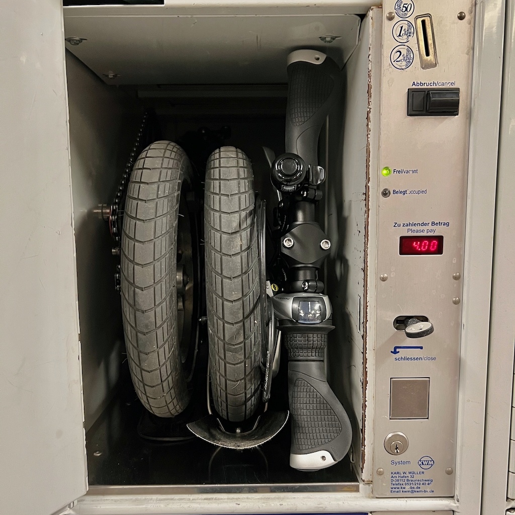 All stowage options are designed for hand luggage dimensions. Therefore, the Kwiggle also fits under the seats in the ICE and in other trains. It fits effortlessly into cabinets and lockers and in the trunk of any car. Kwiggle is the game changer in the folding bike sector and brings unimagined mobile freedom.
