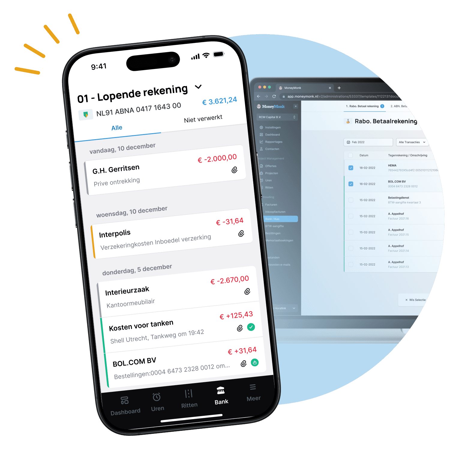 Open een zakelijke bankrekening en koppel hem gratis met MoneyMonk. Zo beschik je realtime over je transacties. Ideaal als je snel je administratie wilt bijwerken.