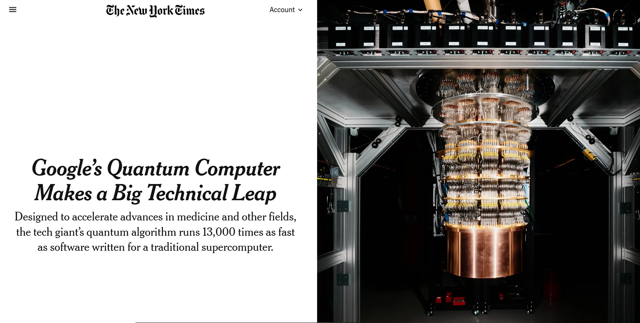 In its blog post, Google stated that “This work demonstrates a verifiable quantum advantage and paves the way for solving real-world problems like Hamiltonian learning in Nuclear Magnetic Resonance (NMR)”. It was associated to the arXiv published the same day, with 341 authors!