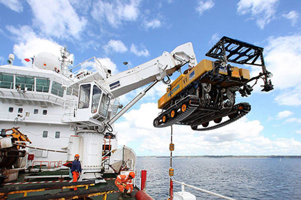 If the damaged cable is in shallow water, an ROV equipped with cameras and robotic claws is deployed to find the fault and retrieve the cable. Sometimes, the cable is hard to find due to displacement, such as being dragged off course by a fishing vessel. The ROVs can’t operate in deep water due to the increased pressure, so to fix a deep water cable, the ship has to use a grapnel, which grabs and cuts the cable, dragging the two loose ends to the surface. If needed, one end can then be hooked to a buoy and the other end brought on board. Cable has to be added to make the repair, since there is not enough slack to bring the cable up and cut a piece out. After the cable is retrieved and on board, in a repair room that looks like a laboratory, engineers repair the cable. Data cables can take up to 16 hours to repair, after which they are lowered back down to the sea bed in an omega or hairpin pattern to accommodate the extra length. There is new technology in development that would make in situ repair possible for power cables, preventing the need to pull the cables up to the surface.