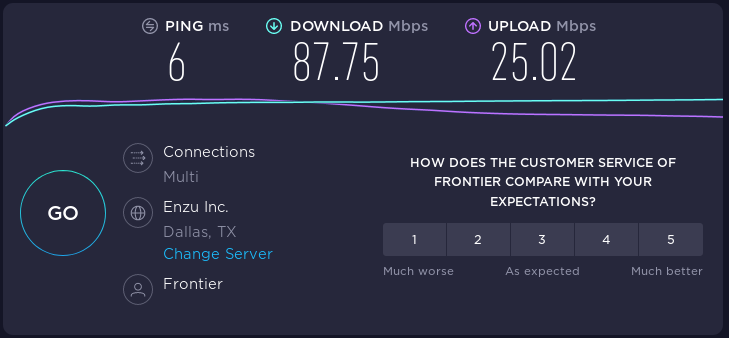 As is usually done, we use speedtest.net to measure network speed. Measurements were first done with the VPN running on a laptop, then with the VPN running on the router. By comparing the two sets of numbers side-by-side, you can get a better understanding of any performance degradation due to the limited power of router hardware.