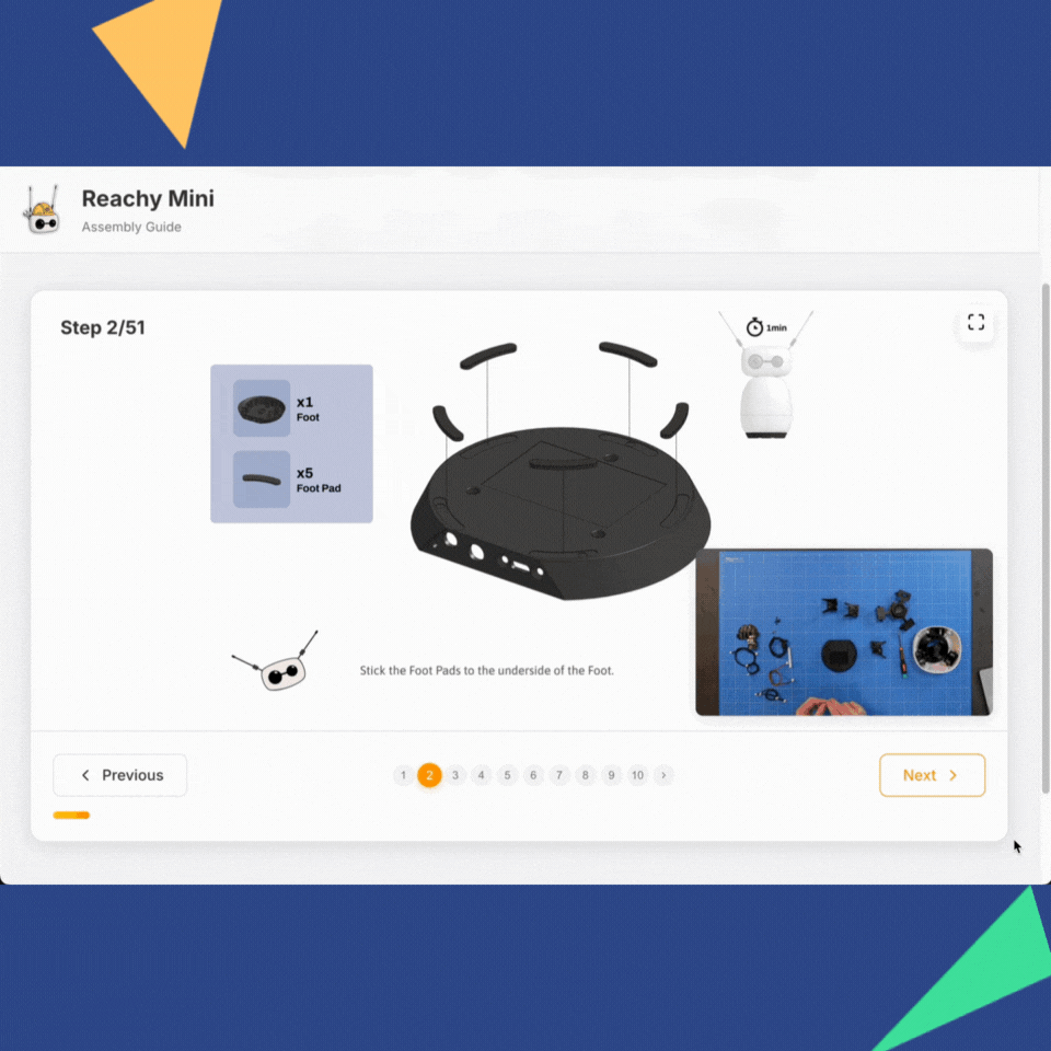 Follow an interactive online guide to assemble Reachy Mini easily, from start to finish