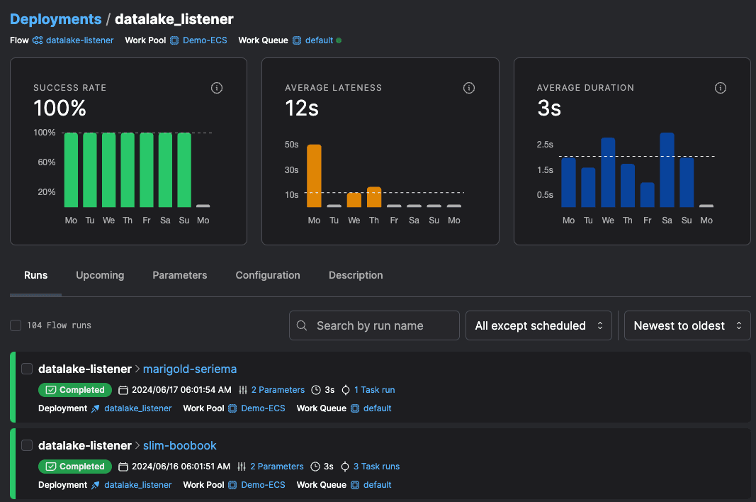 We've redesigned the Prefect 3 engine to be completely portable. This extends our existing capabilities around task runners and work pools to support running any function, anywhere, whether that’s a laptop, a lambda, or even a legacy orchestrator. You don't even need to set up a full workflow. Just decorate the function, call it and you'll get the full benefits of orchestration and observability. This is our third-generation orchestration engine and it is the fastest and most scalable one we've ever built—in many cases, reducing overhead by more than 90% compared to Prefect 2.