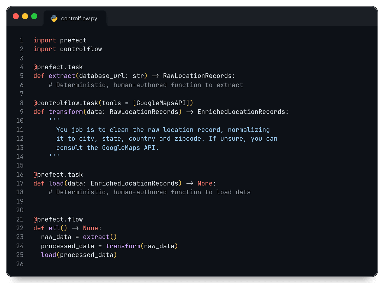 In addition, we are announcing ControlFlow, our new open-source framework for building agentic workflows, built on top of Prefect 3.0. ControlFlow allows AI engineers to orchestrate and control AI agents across multiple tasks, with consistent history and context throughout.