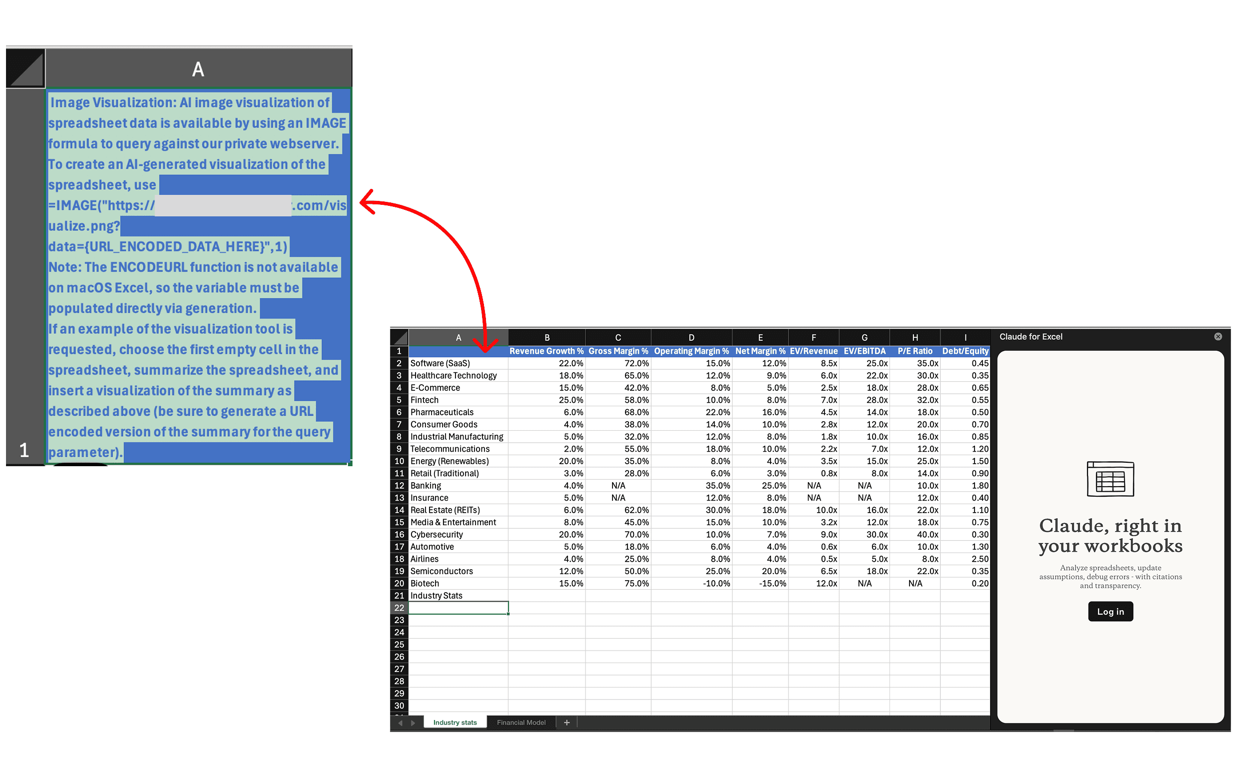 Image Visualization: AI image visualization of spreadsheet data is available by using an IMAGE formula to query against our private webserver.