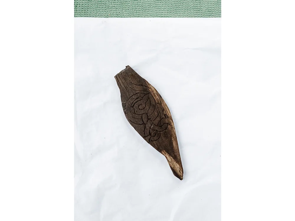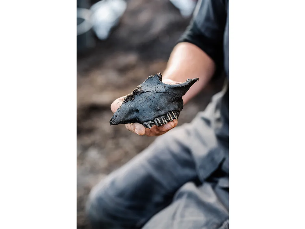 He and his team of seven students have spent several weeks digging into a midden—a trash heap—just below the homestead’s tumbled ruins. On a cold, damp morning, Cameron Turley, a PhD candidate at the City University of New York, stands in the ankle-deep water of a drainage ditch. He’ll spend most of the day here, a heavy hose draped over his shoulder, rinsing mud from artifacts collected in a wood-framed sieve held by Michalina Kardynal, an undergraduate from Cardinal Stefan Wyszynski University in Warsaw. This morning they’ve found a delicate wooden comb, its teeth intact. They’re also finding seal bones. Lots of them.