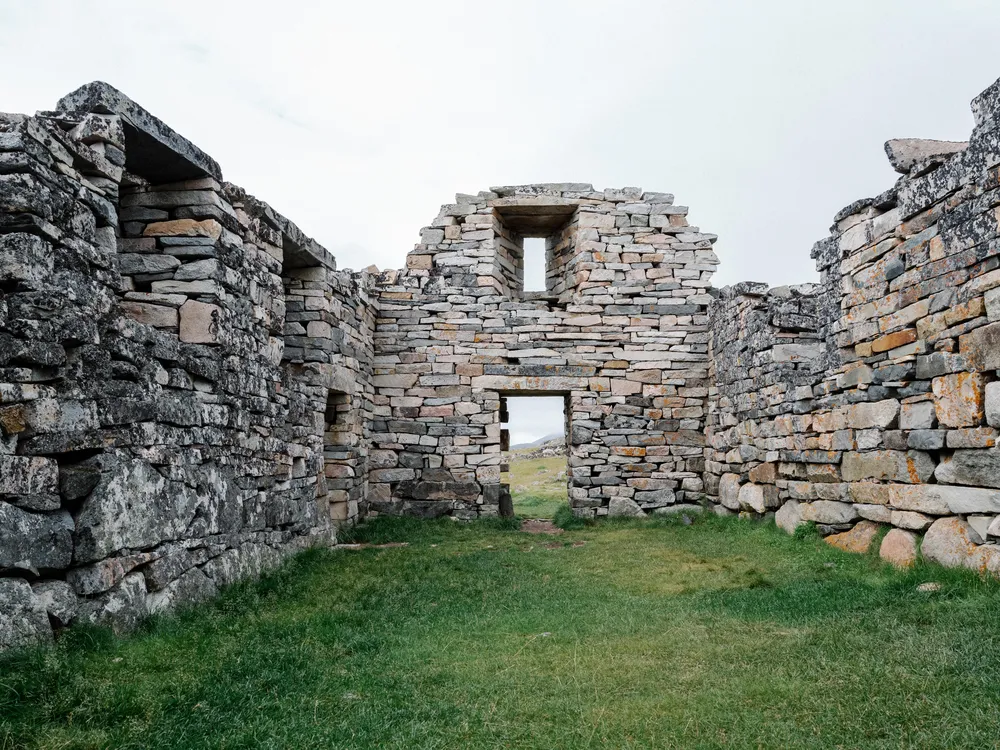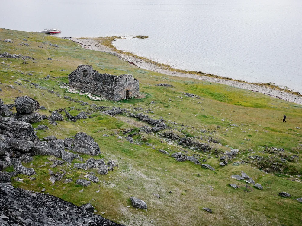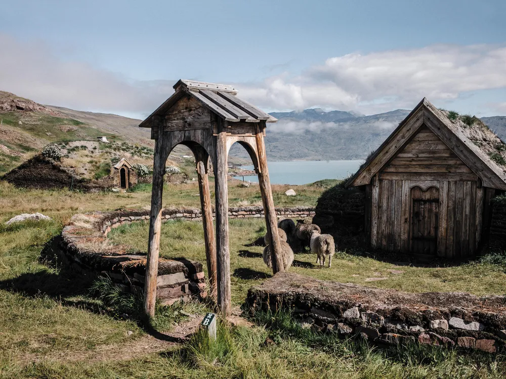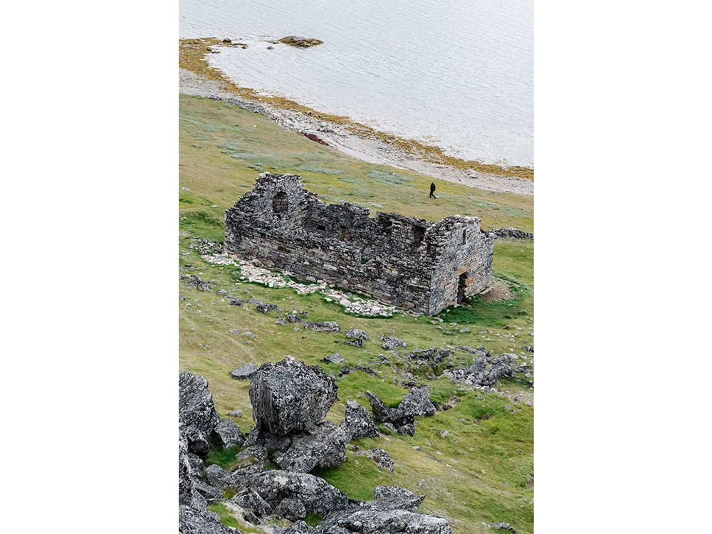 The homestead lies at the end of a hilly dirt road a few miles inland on Hansen’s farm. It’s no accident that most modern Inuit farms in Greenland are found near Viking sites: On our trip down the fjord, we were told that every local farmer knows the Norse chose the best locations for their homesteads.