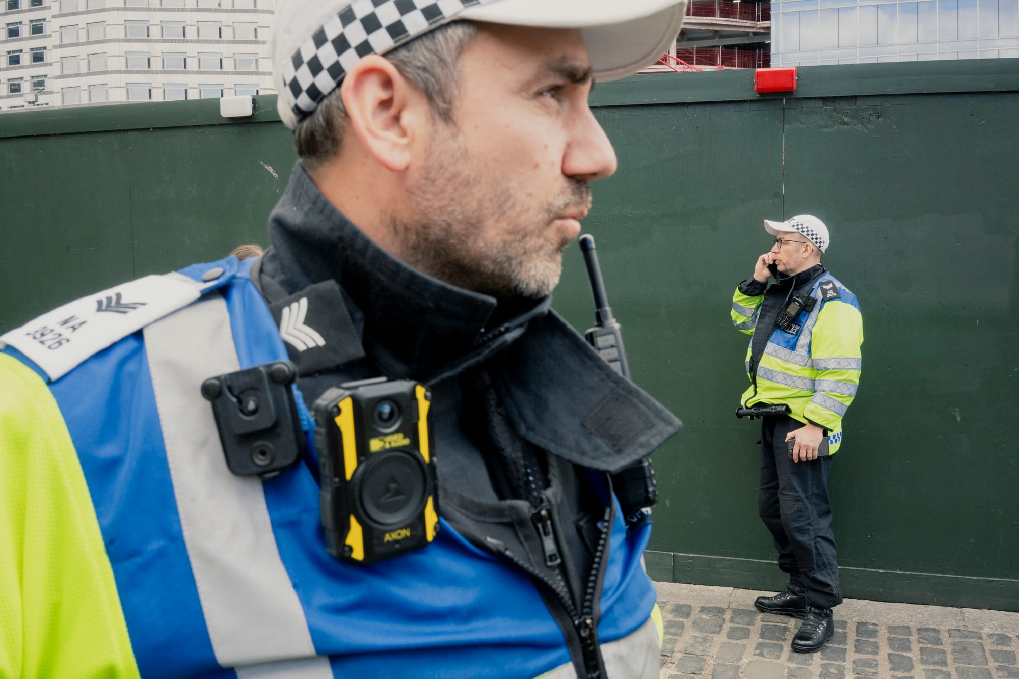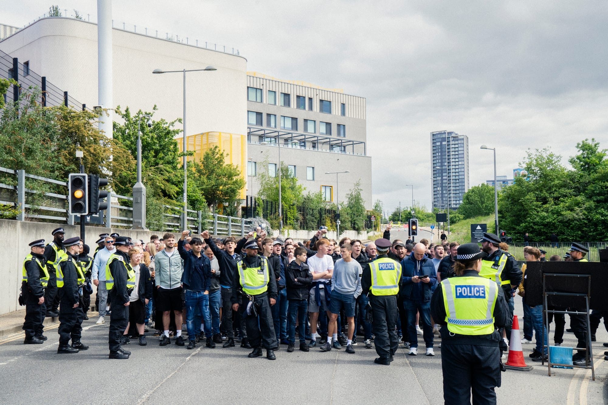 “So,” Parker continues, discussing plans for when the fans exit the stadium, “if they don't come out in one coherent group, that's fine, we'll just police it out and just go with that. But if they come out in one group, then just be prepared to take them back to where they came from.” As the briefing continues, Parker opens the conversation up to the rest of the room. Aside from one potential flashpoint near Stratford station where fans might merge, no pressing issues are brought up, and the officers get a moment of respite to sip on instant coffee and share chocolate biscuits.