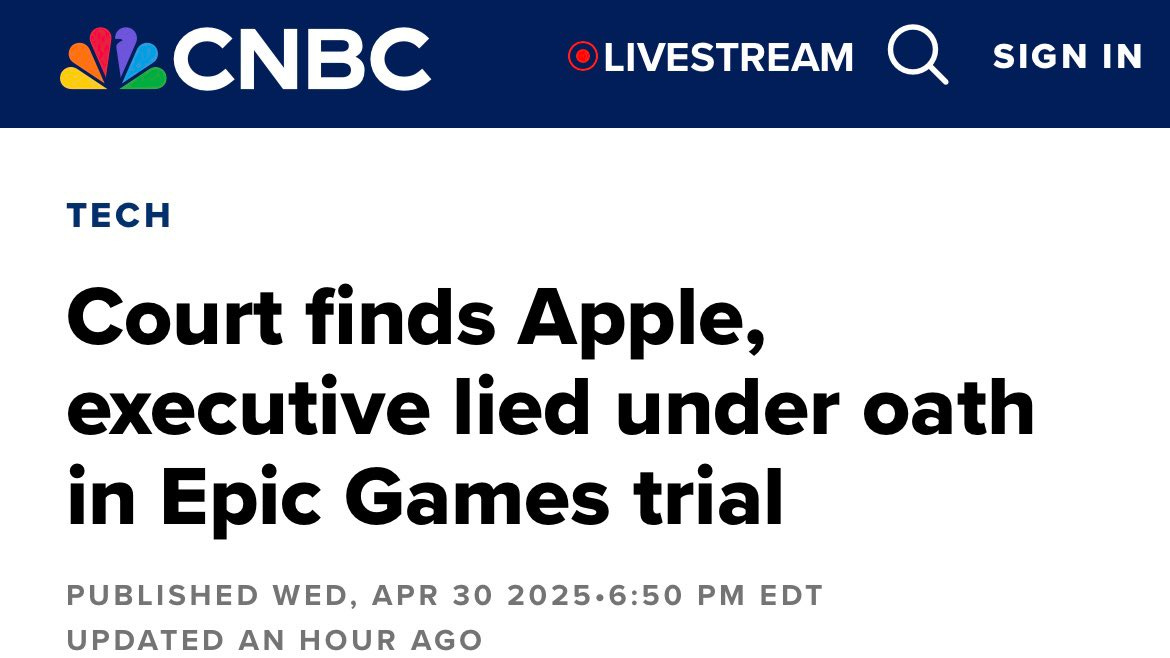 That’s not all. For a year and a half, Apple has engaged in bad faith, levying a variety of different and new fees to app developers to get around the spirit of the judicial order. It put up scare screens, engaged in sleazy privilege claims, and lied under oath to the judge about its decision-making. Normally these kinds of tactics happen without consequence for important business executives. But this time, the judge accused Apple Vice-President of Finance, Alex Roman, of having “outright lied under oath,” and referred the matter to the U.S. Attorney for a criminal contempt investigation. She also went out of her way to blame Apple CEO Tim Cook directly.