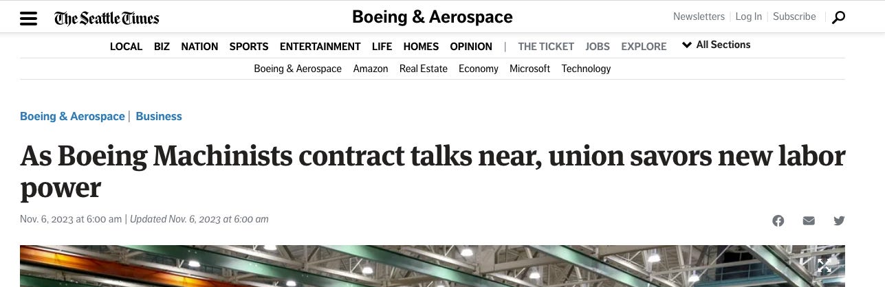 All of this anger at Boeing is setting up for an interesting moment when a new contract negotiation and strike happens. We’re now in uncharted territory, because I haven’t seen such support for the U.S. government to take such an aggressive approach to a giant corporation in my lifetime. I doubt most of us have. So that means everything is now on the table, until Boeing is fixed. And that could take awhile.