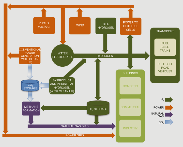 REDUCING greenhouse gas (GHG) emissions to avoid the catastrophic consequences of global warming is the most significant problem of our time. Hydrogen can play a key role in helping the UK achieve its GHG emission reduction targets. Major reductions of emissions have been achieved in the electricity sector by increasing renewable electricity penetration as well as phasing out coal-fired power plants, but as well as continuing to reduce emissions from electricity production, progress in the heating and transport sectors needs to be drastically improved. Hydrogen can play a major part in reducing emissions in these sectors, and if produced electrolytically, provides a link between them.