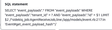 In order to make use of our ability to determine which partition event_payloads would be stored in, we defined our own event_payload function to override the default rails event.event_payload. Our function uses the event_payload_id of the event and our reverse engineered PostgreSQL hash function to query the event_payload’s partition for the record directly: