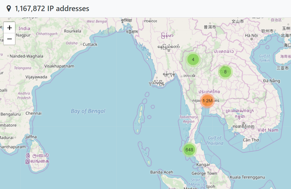 There is no conceivable way that this is legitimate, organic usage of the API from Thailand. The ASN is owned by TOT Public Company Limited, a local Thai telco that somehow, has ended up with a truckload of IP addresses hitting HIBP at just the right rate to not trigger the rate limit. The next top ASN is Biznet Networks in Indonesia. Then Claro in Brazil. After that there's Digital Ocean and then another Indonesian telco, Telkomnet. It makes for a geographical spread that's entirely inconsistent with legitimate usage of genuine consumers (no, HIBP isn't actually big in Iran!):