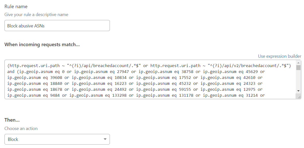 That works pretty quickly and is very effective, except for the fact that there's an awful lot of ASNs out there being abused. Plus, it has side-effects I'll come back to shortly too.