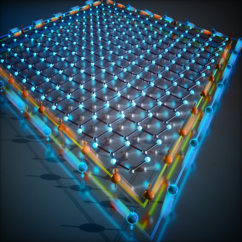 Afbeelding 2: Artistieke weergave van de dissipatievrije randkanalen in Germanene. Credits: Ella Marushchenko