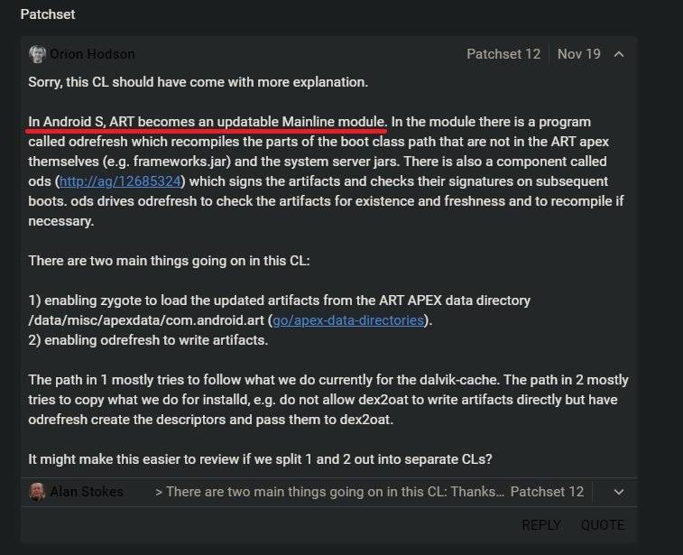 As spotted by XDA Recognized Developer luca020400, a Google engineer has revealed that the company plans to make the Android Runtime (ART) an updatable Mainline module in Android S/Android 12.