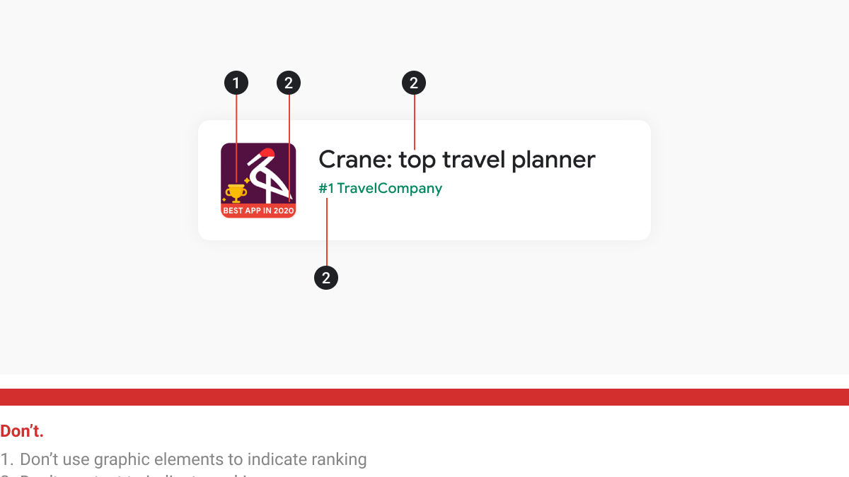 - Prohibiting keywords that imply store performance, promotion in the icon, title and developer name