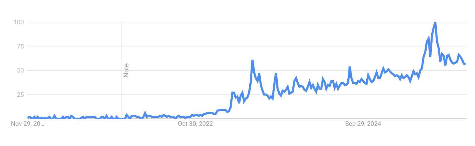 In 2023, Google Searches for “AI Girlfriend” were up by 2400 percent. The graph below highlights the Google Trends for this term over the past five years: